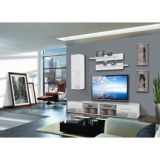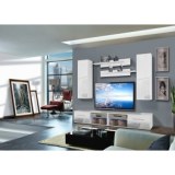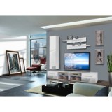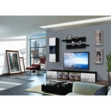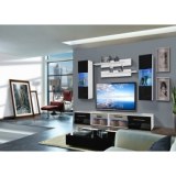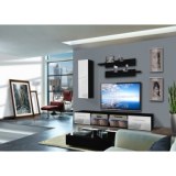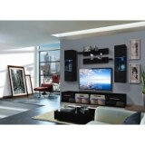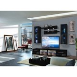 - Banc TV. - Banc TV avec une porte abattante et un compartiment de rangement séparé par une tablette en verre avec éclairage LED bleu. Porte abattante avec des poignées. Deux bancs TV sont inclus. Vitrine à suspendre fermée : composée à l' Nos prix sont indiqués en HT et soumis...