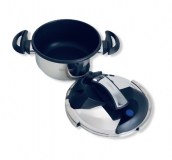 Autocuiseur-cocotte minute de la marque Swiss Line de 4 L Revêtement intérieure anti adhésif façon pierre, coque en acier inoxydabl en18/10 ouverture fermeture facile grâce à son système de clips -Compatible tout feux ( gaz- électrique -vitrocéramique- halogène-induction) - Poignée...