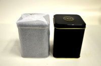 Boîtes métal noir et or 87x87xh.115mm - Corps : uni noir (roulé extérieur doré) - Couvercle : fond noir + logo XD or métallique en relief (roulé extérieur doré) - Fond : or métallique - Intérieur : or métallique - Conditionnement : cartons de 12 pcs Chaque boîte est emballée dans...