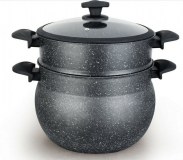 Marmite avec Revêtement Antiadhésif en Marbre et Couvercle en Verre 20cm : 12.50€ HT / 24cm : 14.20€ HT / 28cm : 16.20€ HT 32cm : 18.60€ HT / 36cm : 22.80€ HT / 40cm : 26.50€ HT 44cm : 28.50€HT - Matériau: Fonte d'aluminium - Intérieur: Revêtement antiadhésif GREBLON C2+ «marbre» - Couvercle...