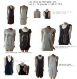 3 Lots créateurs Bio « Les Fées de Bengale » haut de gamme femme : -Lot 1 : 8 pièces pour 90€ 6 tee-shirts et 2 écharpes en coton bio. -Lot 2 : 19 pièces pour 280€ 9 robes coton bio couleur crème et taupe, 10 tee-shirts sérigraphiés coton bio couleur crème, taupe et noir...