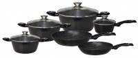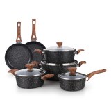 Batterie de cuisine de 10 pièces avec revêtement antiadhésif «marbre» matériau: fonte d'aluminium intérieur: revêtement antiadhésif "marbre" casseroles Ø24cm et Ø28cm casserole avec couvercle en verre Ø16cm casseroles avec couvercle en verre Ø20; Ø24; Ø28cm poignées ergonomiques au...