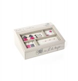 - Boîte à couture en bois en forme de pupitre, avec couvercle à soulever. - Un grand compartiment. Sur le dessus, vitre protégeant de petits élements de coutures qui constituent une décoration. Inscription "au fil du temps" sur Nos prix sont indiqués en HT et soumis à TVA 20% Localisation ...