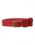 Ceinture ornée d'œillets et de clous accessoiriée de 2 pochettes Boucle rectangulaire dorée Composition : SYNTHETIQUE Largeur : 5,8 cm Modèle vendu par paquet de 12 pièces à la couleur, T80 : 4 pcs, T85 : 4 pcs et T90 : 4 pcs. Quantité sur stock : merci de nous consulter Localisation ...