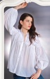 LOT DE 34 BLOUSES BLANCHES 100% COTON légèrement transparente coupe assez ample et évasée , manches bouffantes ressérées au poignet par un élastique col mao patte de boutonnage visible, boutonnage sur toute la longueur 6 taille 1 36/38 12T2 38/40 3T3 40/42 4T4 42/44 9T5...