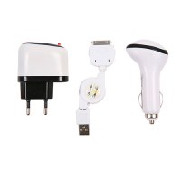 Grossiste Auto-entrepreneur, vous proposeKit 3 en 1 ( chargeur secteur USB + chargeur voiture USB + Câble USB 2.0) Compatible Iphone 3G, 3GS et Iphone 4/4S Poid unitaire: 150gr Colisage par référence : 8 Prix unitaire: 4.52€ (Prix dégressif selon quantité) Lot de 100: à partir de 3...