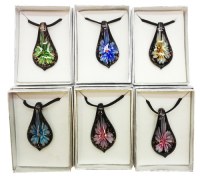 Lots de 6 pendentifs en verre style Murano Société vend ses pendentifs en verre. Nous avons une gamme de 11 lots différents. En forme de coeur, cercle, goutte ou même feuille, vous pouvez faire votre choix, il y en a pour tous les goûts. Ces pendentifs sont en verre style Murano...