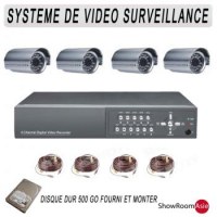 kit complet. Prèt à brancher et a être utiliser. Enregistreur vidéo: - 4 Entrées caméra. - 1 sorties moniteur. - Compression MPEG-4 des images (encore plus longtemps de video avec une qualité optimum). - Interface de l'enregistreur : graphique et conviviale à la souris...