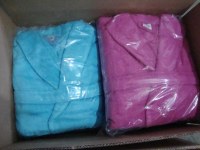 Peignoir Adulte Col Châle 100 % coton,500 gr/m² = 10,00 € pièce Cape de bain 100 % coton, = 3,00 € pièce Gant coloris assortis coton,500 gr/m² = 0,25 € pièce Torchon à carreaux 50 X 70 cm = 0,50 € pièce Serviette 100 % coton, 500 gr/m² 50 X 90 cm = 1,05 € pièce Drap de Bain 100 % coton, 500 gr/m² 70 X 140 cm = 2.10 € pièce Drap de Bain 100 % coton, 500 gr/m² 100 X150 cm = 3,40 €...