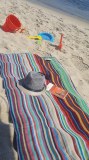 Serviette de plage / Paréo en coton recyclé de 180 gr/m2 avec frange Multicolor Dimensions: 90x170 cm 20 pièces par emballage Localisation : Chem. des vignes, 44760 les moutiers en retz, Personne à contacter : Frédéric Bonnaudet, 06 44 04 57 16